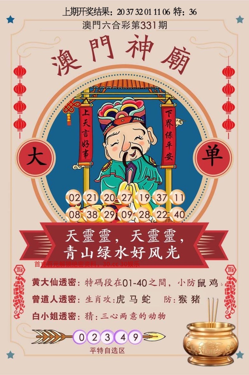 336期:恭喜发财【三码中特】每期包中